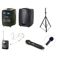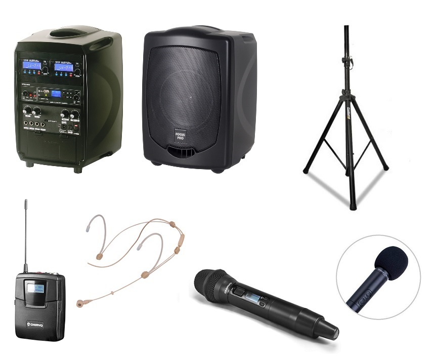 Chiayo FOCUS PRO Marriage Celebrant Portable Wireless PA System Complete Kit - Built-In Bluethooth, 1x Handheld Mic, 1x Headset Mic, 2x Receivers & Speaker Stand