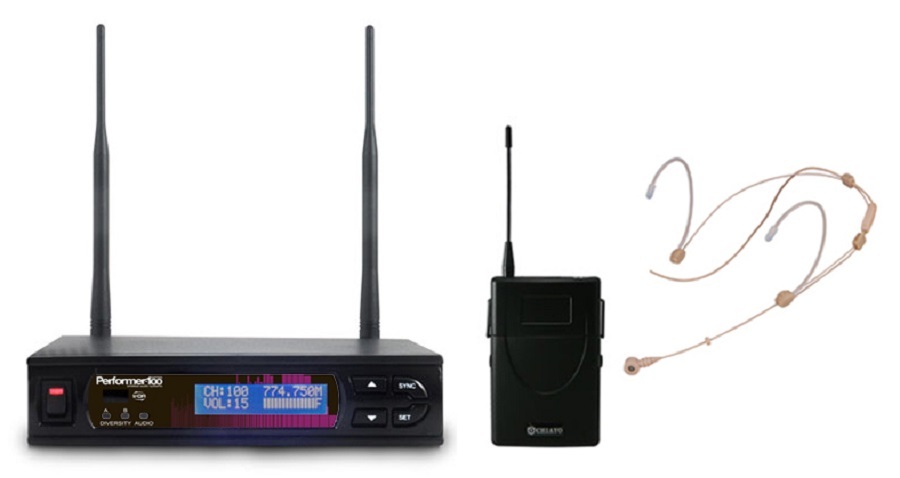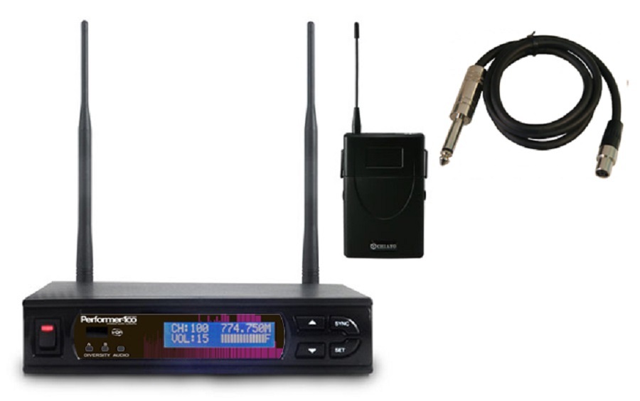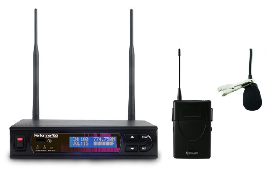 The Chiayo Performer-100 system packages are a metal chassis true diversity receiver with 100 channels of UHF frequency selection with spectrum scan feature and IR frequency upload/download. XLR patch lead and rack mounting kit are included in each package. The packages available are;
