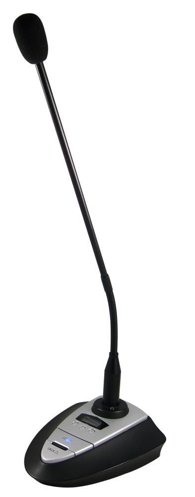 - Cardioid gooseneck microphone included.