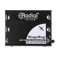 The SB-48 is a high performance phantom power generator that employs a non-radiating charge pump circuit to create a stable, ripple-free 48 volt supply for active direct boxes and condenser microphones. The stereo design features XLR inputs and outputs with a choice of 48V and 12V operation. The SB-48 is powered by a single 15VDC 400 milliamp supply that is included. The connector may be locked into place using a retention clamp.