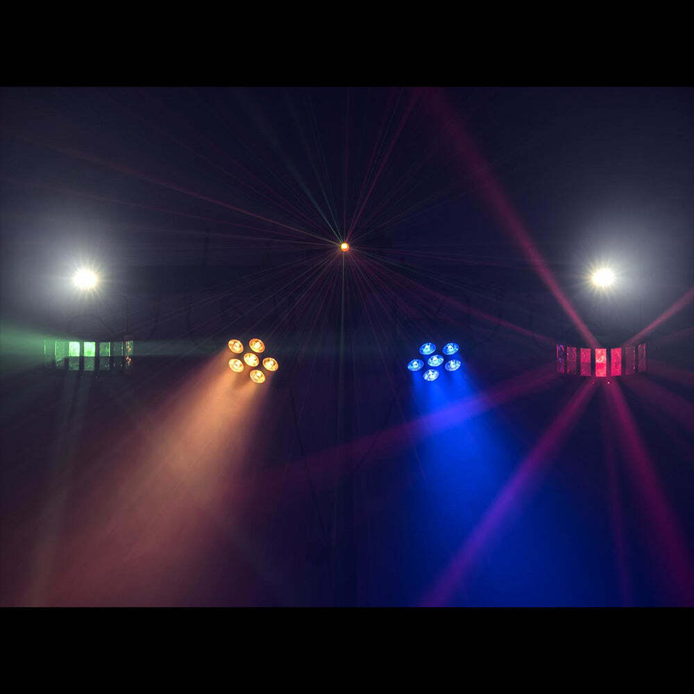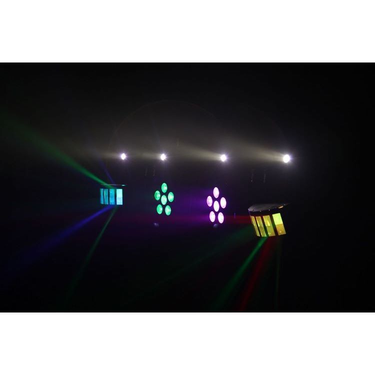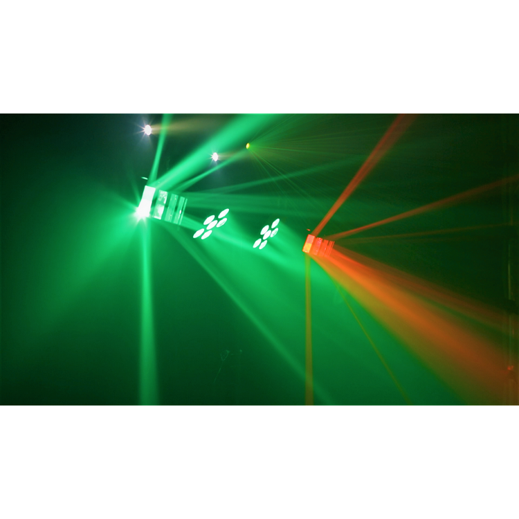 - Effects combinations: Grating laser + LED par + LED derby + White/UV Strobe