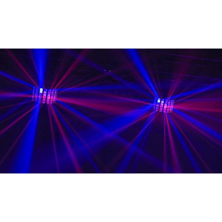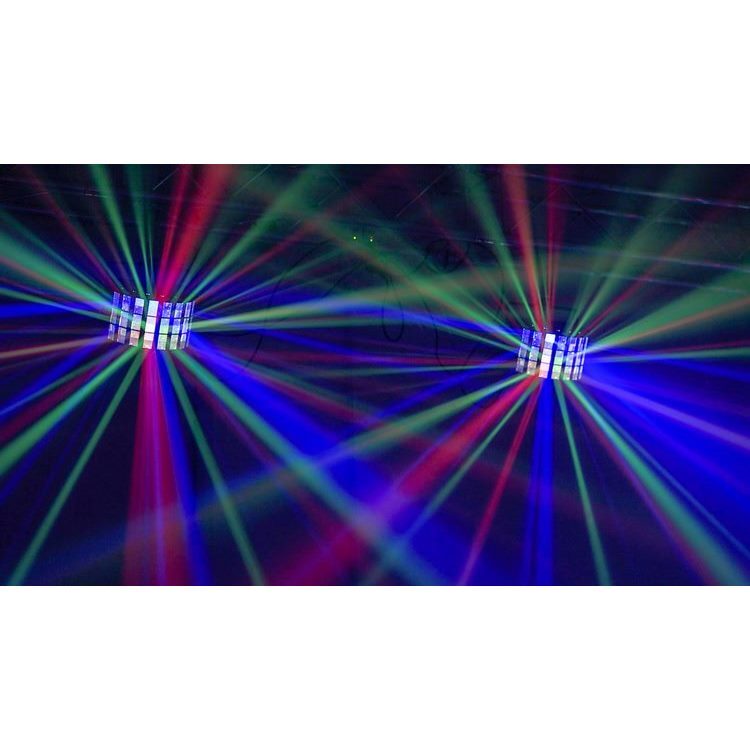 The Razor features broader coverage than derby effects twice its size, using sharp, laser-like multicolour beams, shining through 48 groups of professional optical lenses. This light will punch through nearly any ambient lighting. Dazzling RGBW colour beams cross and rotate, illuminating the whole area in sparkling light.