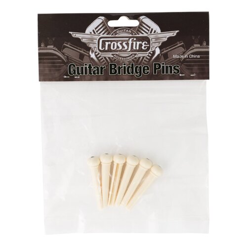 The Crossfire CFBP-6P set of bridge pins are constructed from a quality, hard plastic with a 5 degree taper for maintaining reliable string tension.