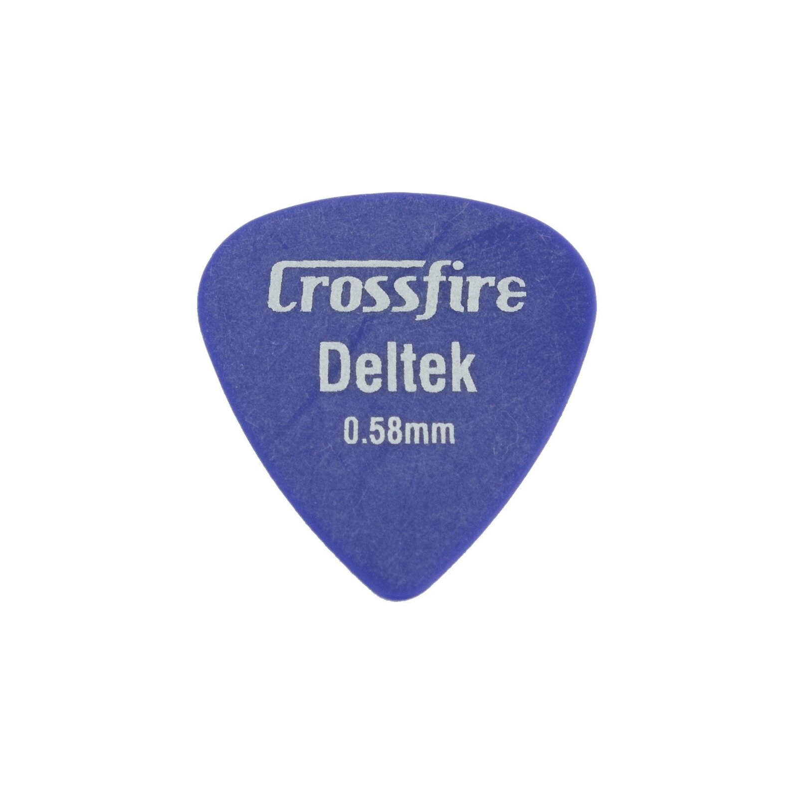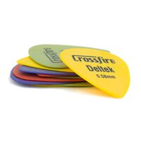 Twenty high quality assorted colour Crossfire Deltek 0.58mm (light) guitar picks featuring improved grip coating.