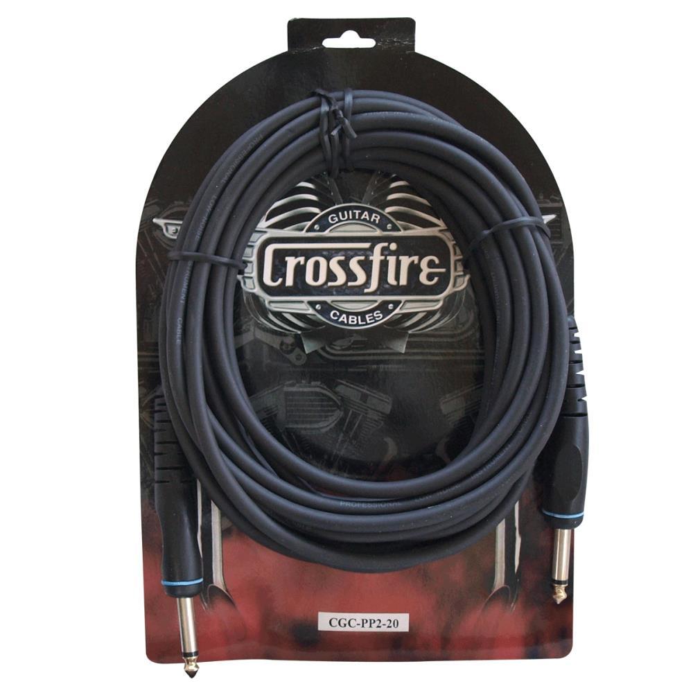 The Crossfire CGC-PP2-20 Guitar / Instrument Cable is a low-noise, 20 foot black cable with deluxe molded straight jacks, Gold-plated tips and scalloped plug grip-bars.