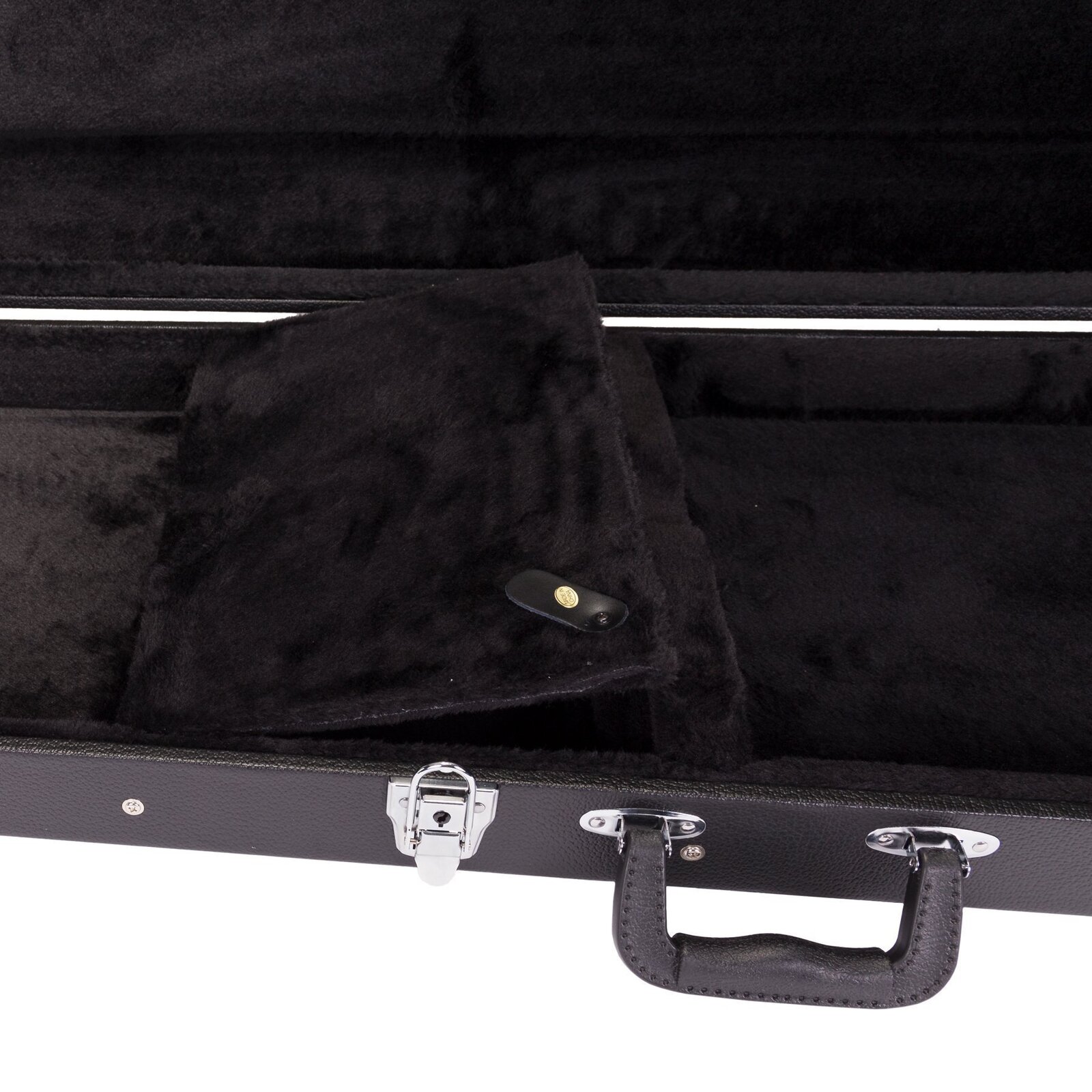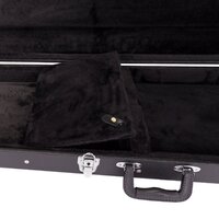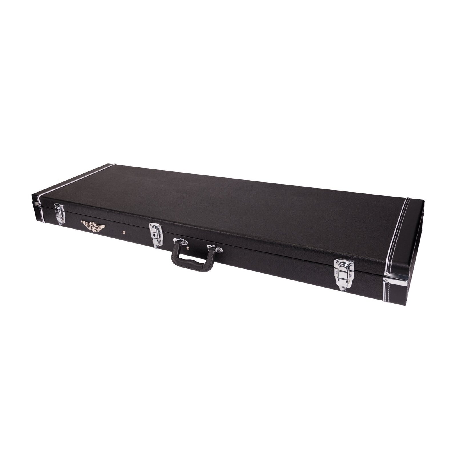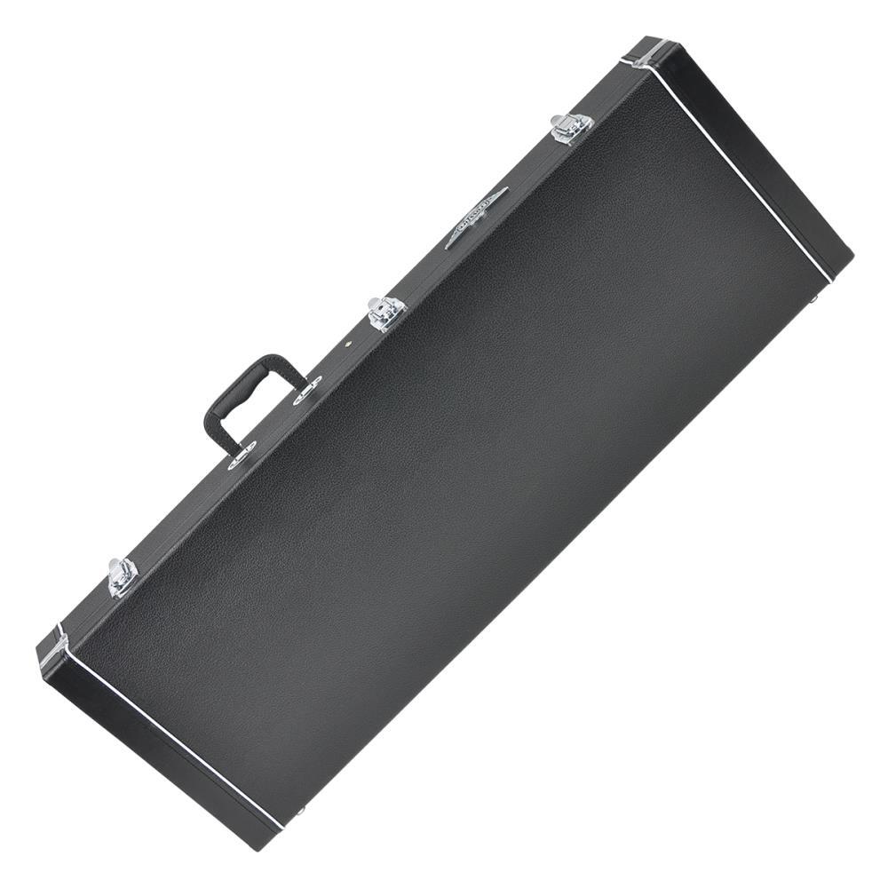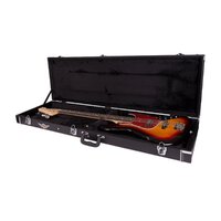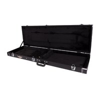Keep your musical investment secure with the Crossfire standard P-Bass and J-Bass style bass guitar case. Features heavy duty plywood construction, black vinyl exterior covering, black plush padded interior, moulded plastic carry handle, accessories compartment, metal feet on base and back, as well as chrome latches (central latch is lockable).