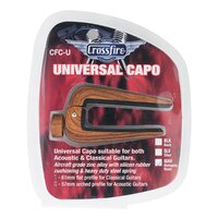 The Crossfire universal capo is suitable for both acoustic steel and nylon string guitars thanks to its clever double sided design; incorporating a 61 mm flat profile for classical guitars, and a 57 mm arched profile for steel string acoustic guitars.