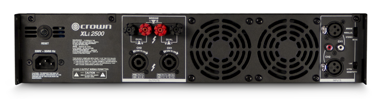 The Crown Audio XLi 2500 2-Channel 750W Power Amplifier features: