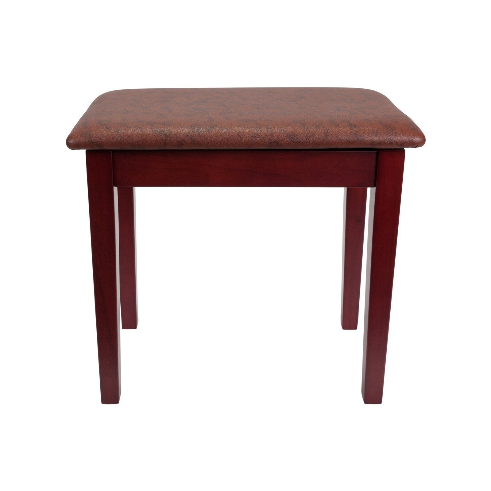 The Crown CPS-2S-MAH features a soft faux leather seat, a sturdy wood frame and an under-seat storage compartment.