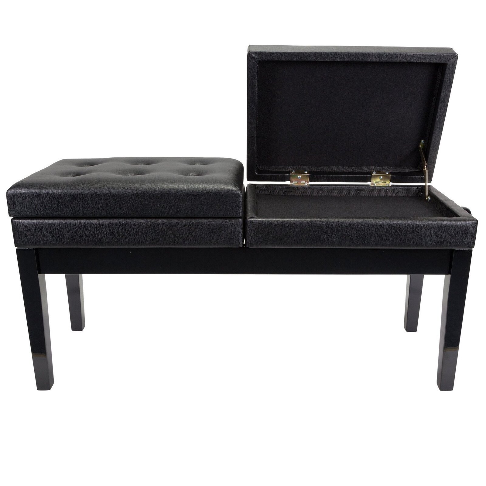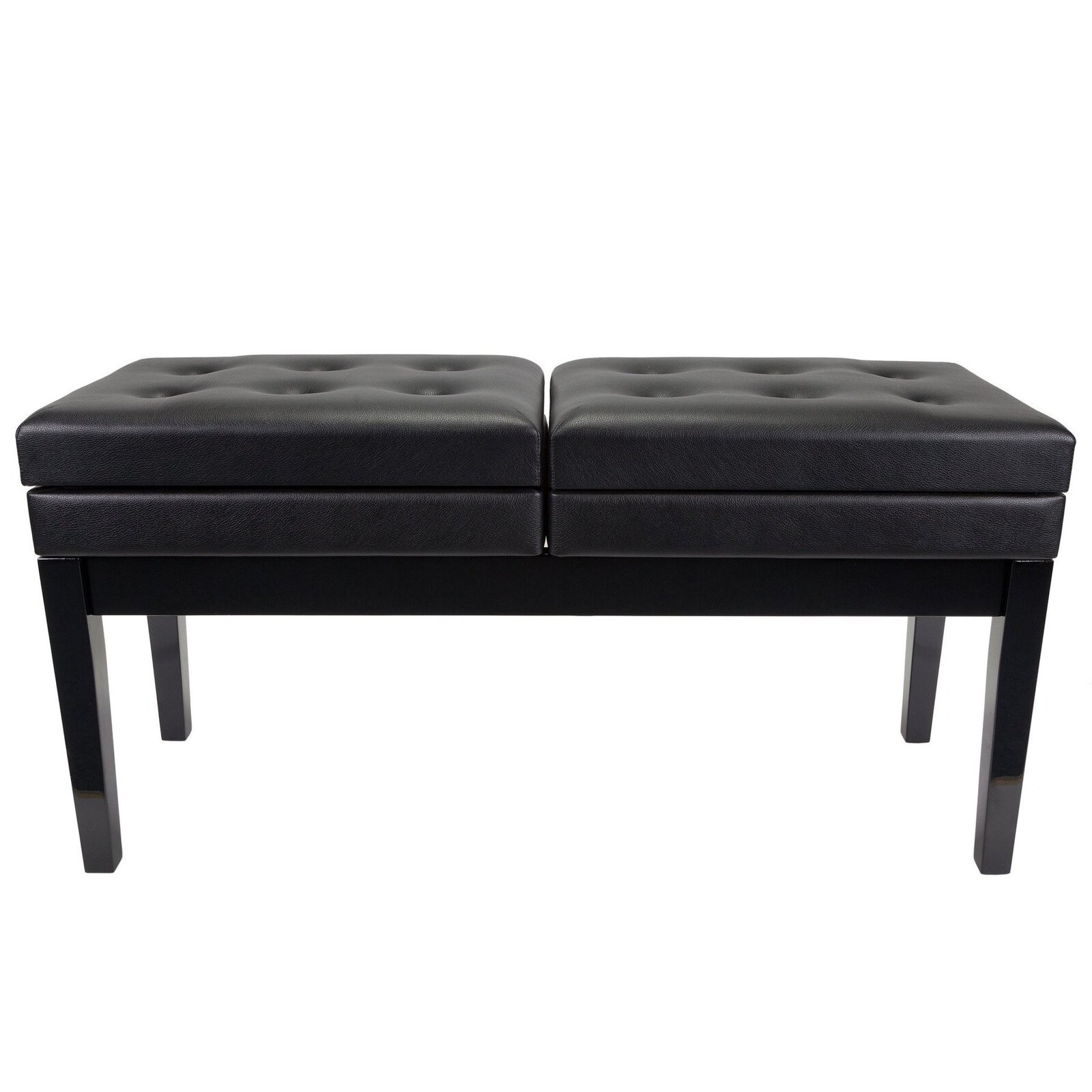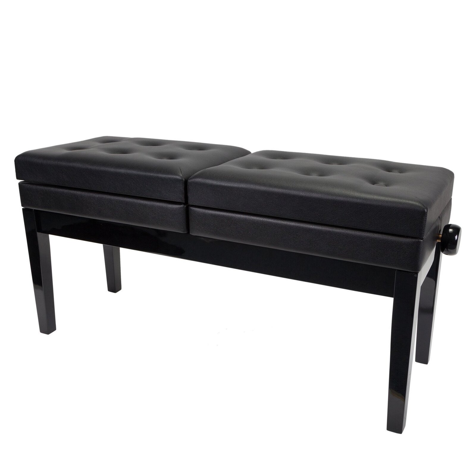 Crown Deluxe Height Adjustable Duet Piano Stool with Storage Compartments (Black)