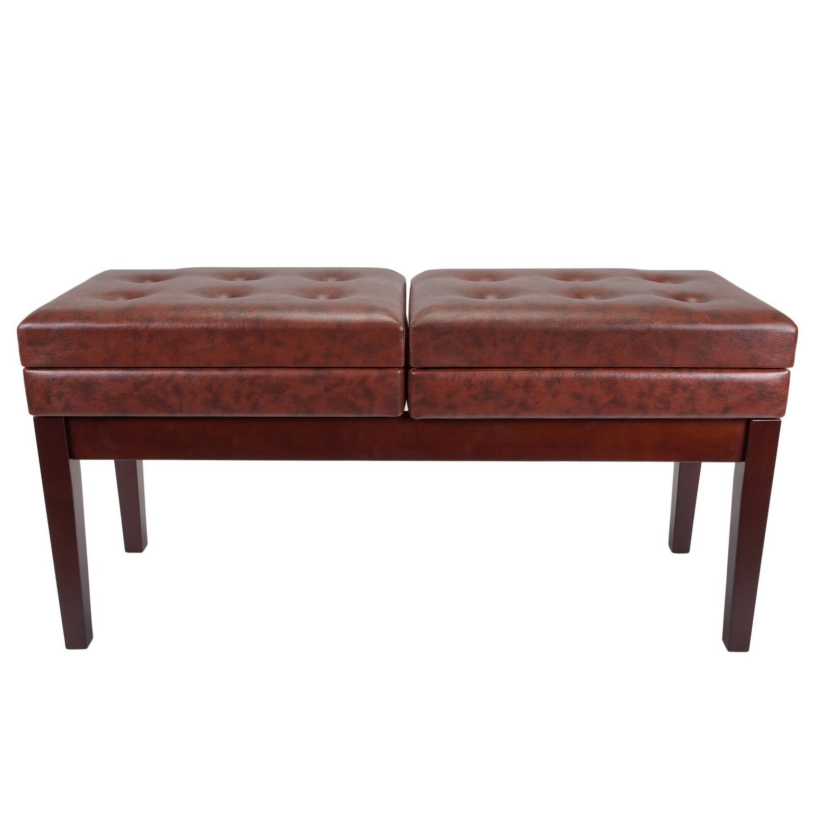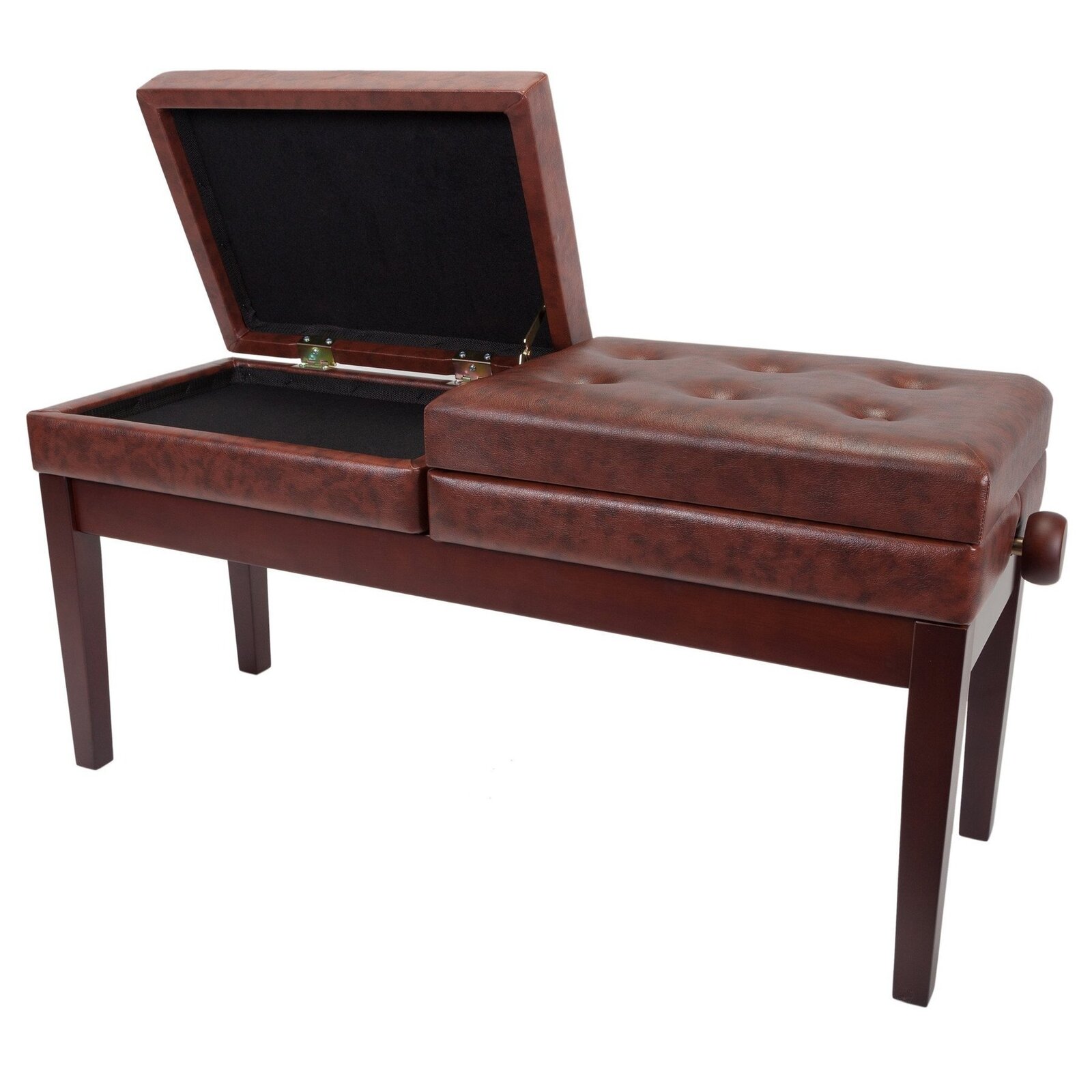 Crown Deluxe Height Adjustable Duet Piano Stool with Storage Compartments (Walnut)