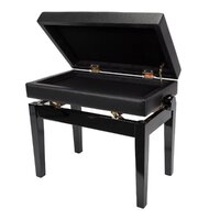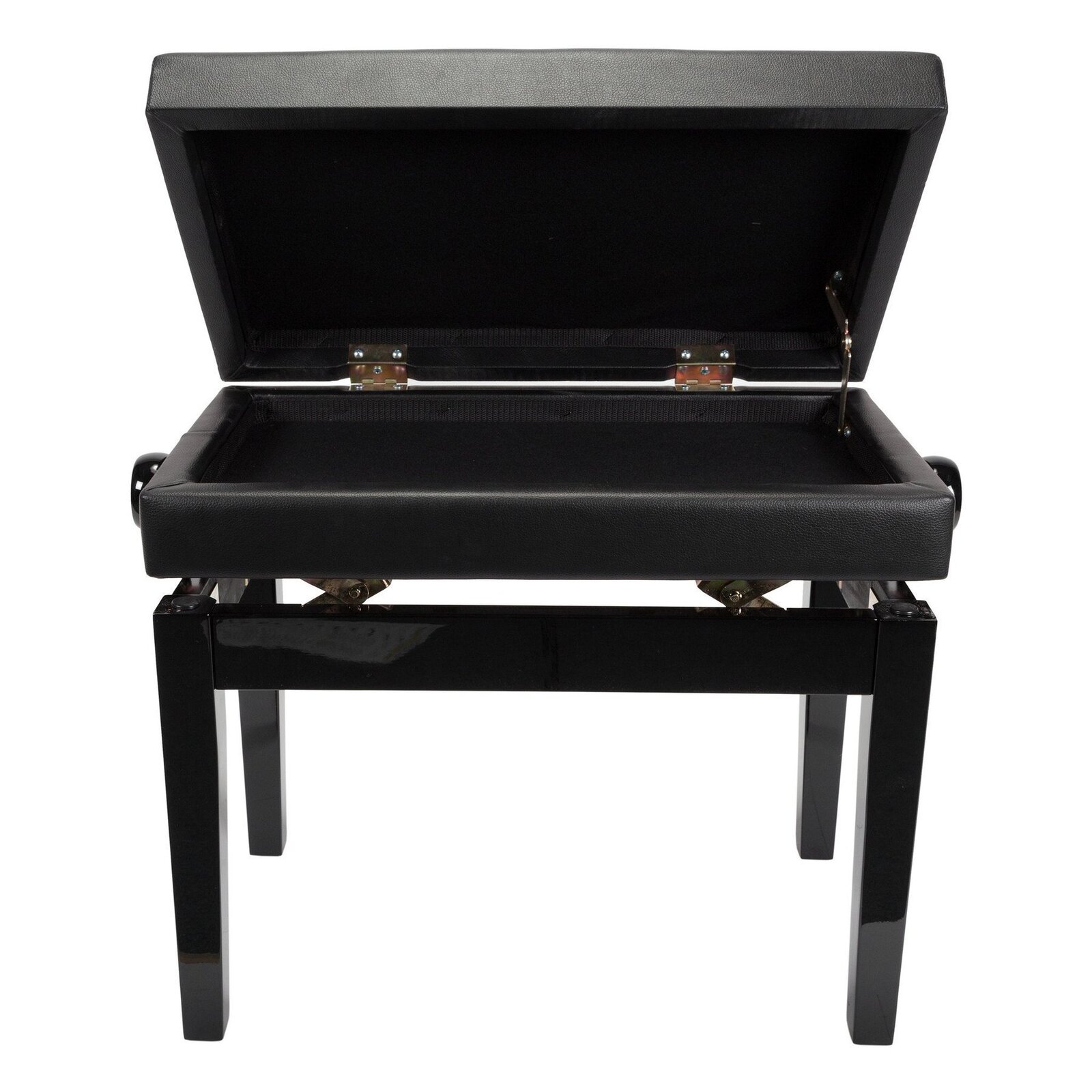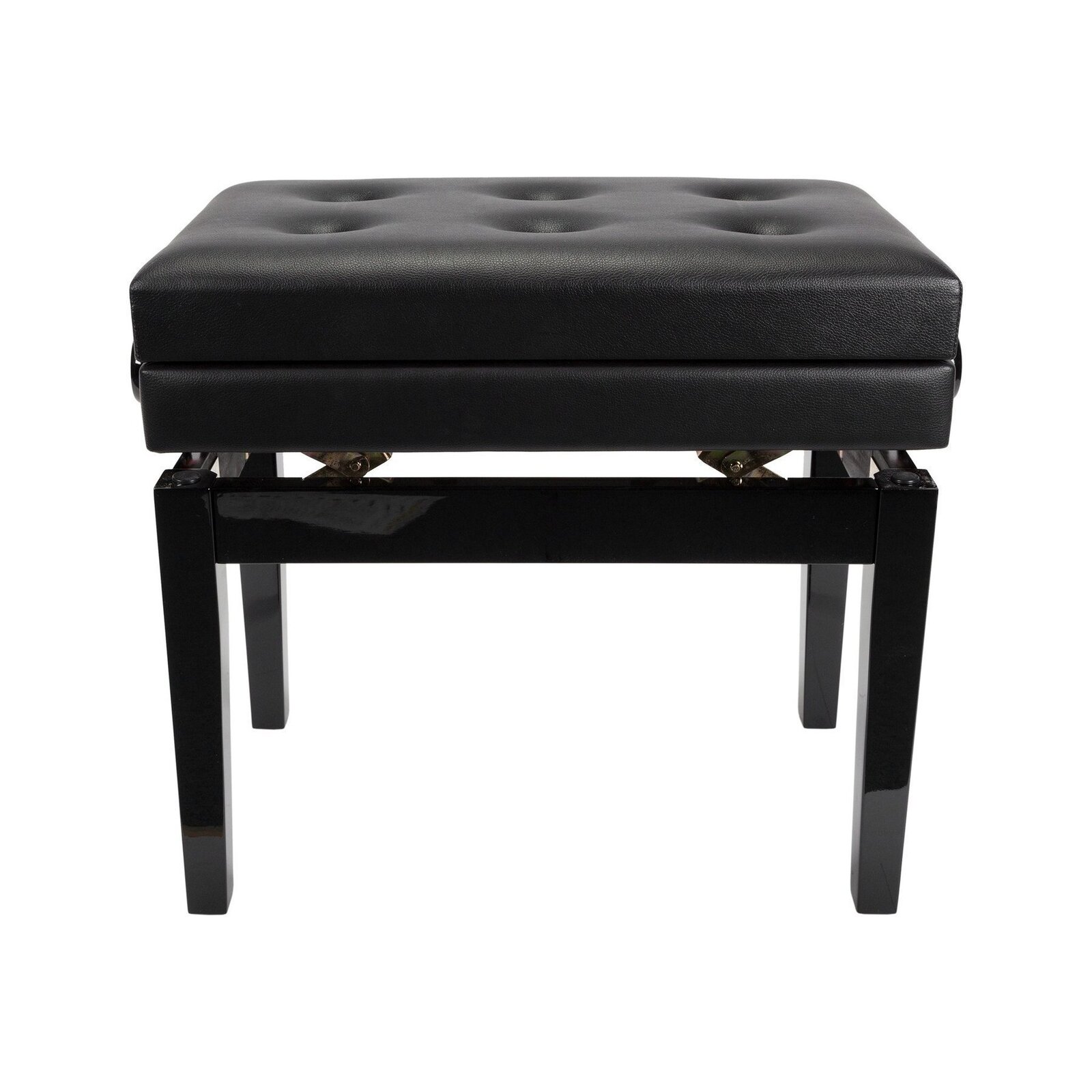 Crown Deluxe Tufted Height Adjustable Piano Stool with Storage Compartment (Black)