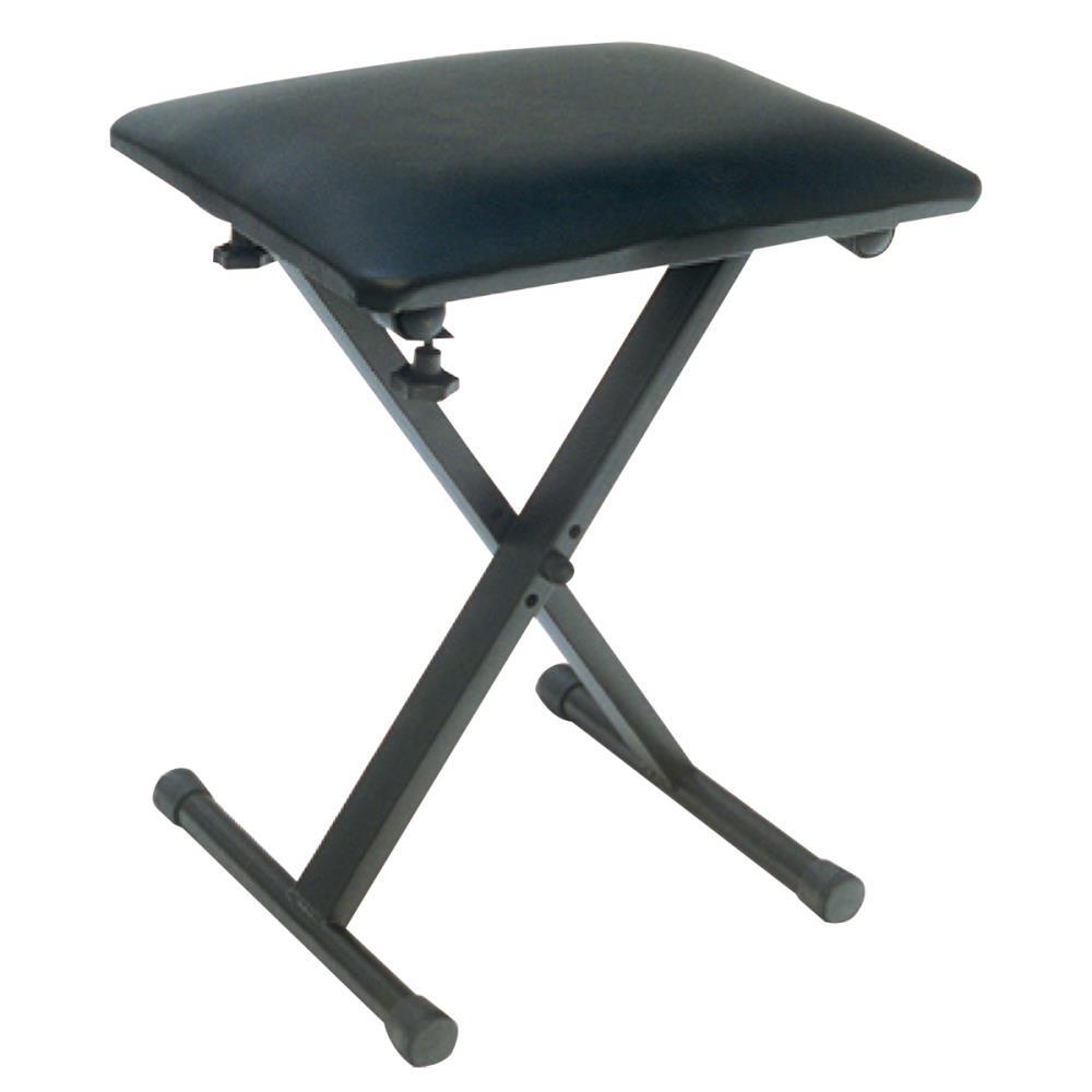 The Crown KB-019-BLK Keyboard Bench is a folding keyboard bench stool and comes with foam-padded black vinyl seat and position height adjustment.