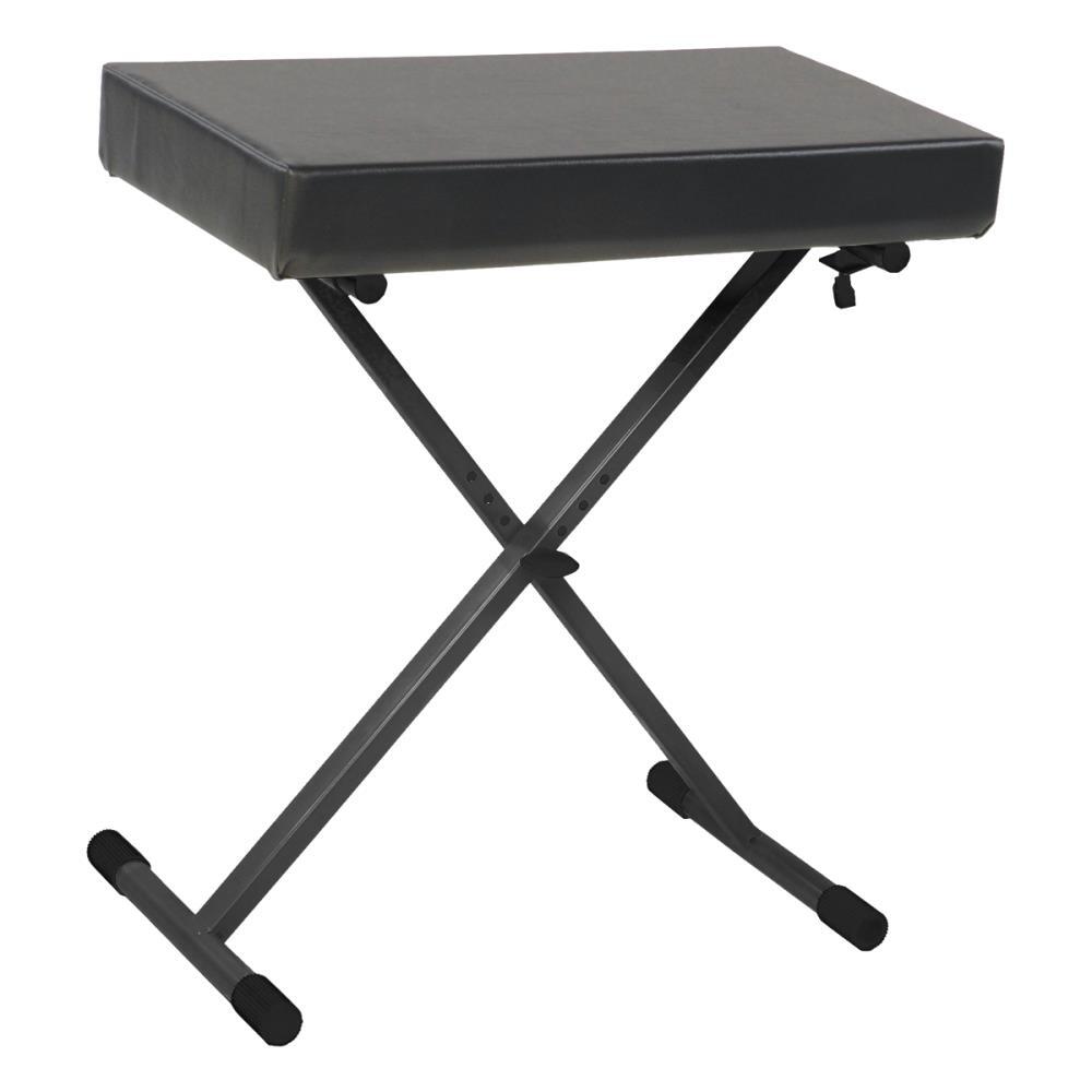 The Crown KB-017-BLK Large Keyboard Bench Stool is a heavy-duty folding keyboard bench and comes with foam-padded black vinyl seat and position height adjustment.