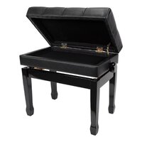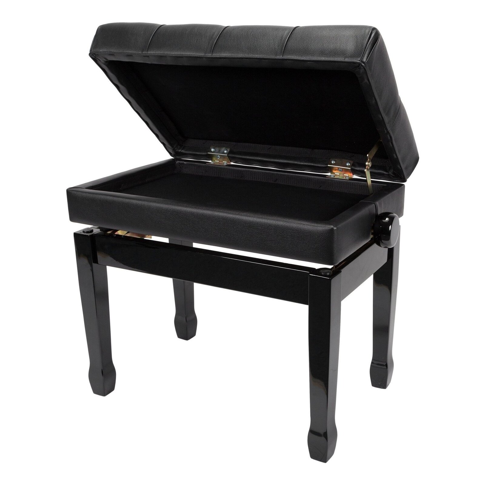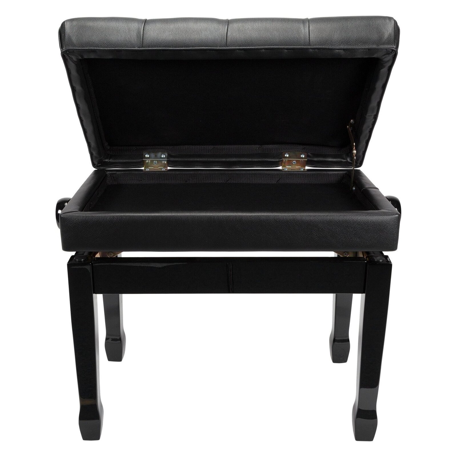 Crown Premium Tufted Double Padded Height Adjustable Piano Stool with Storage Compartment (Black)