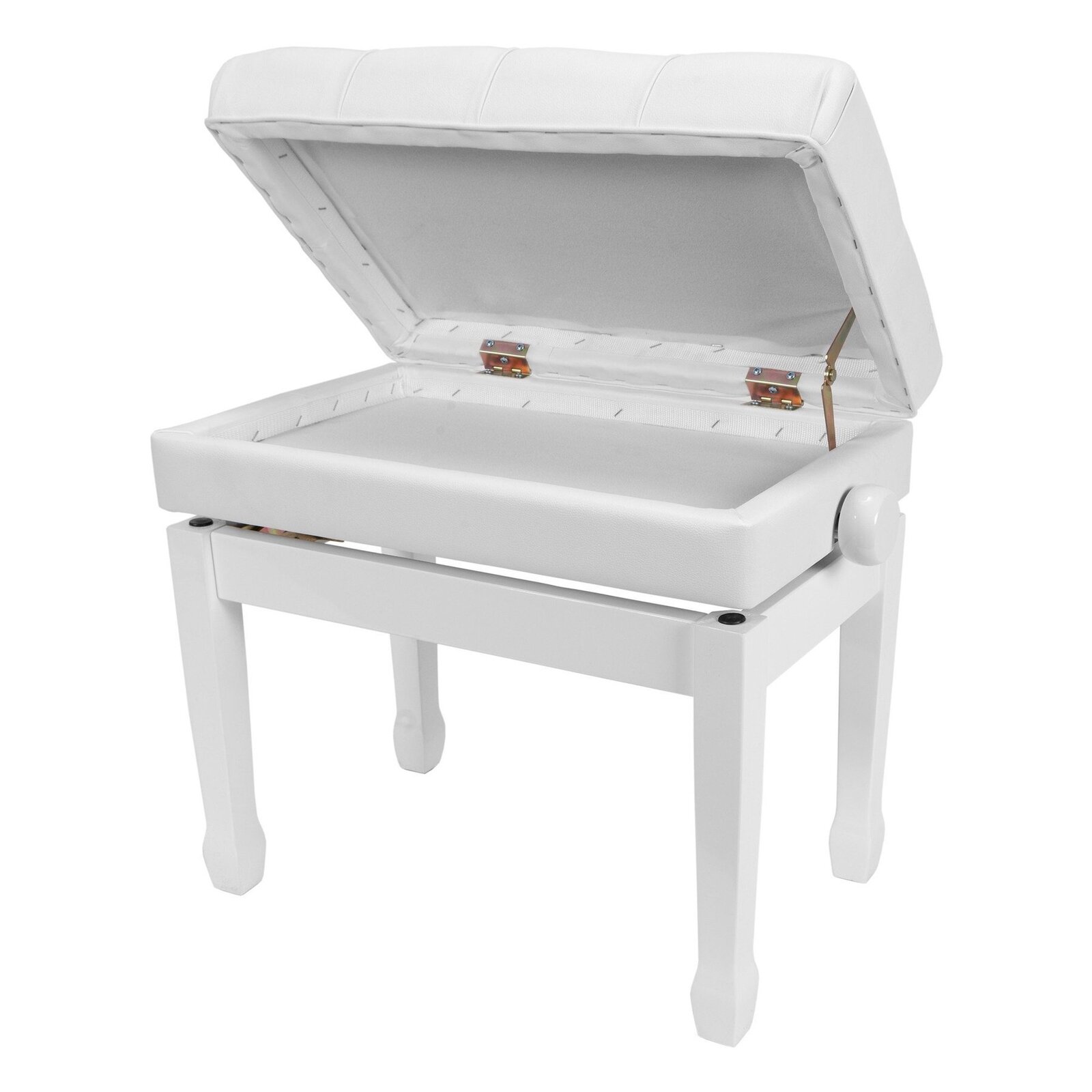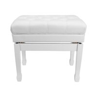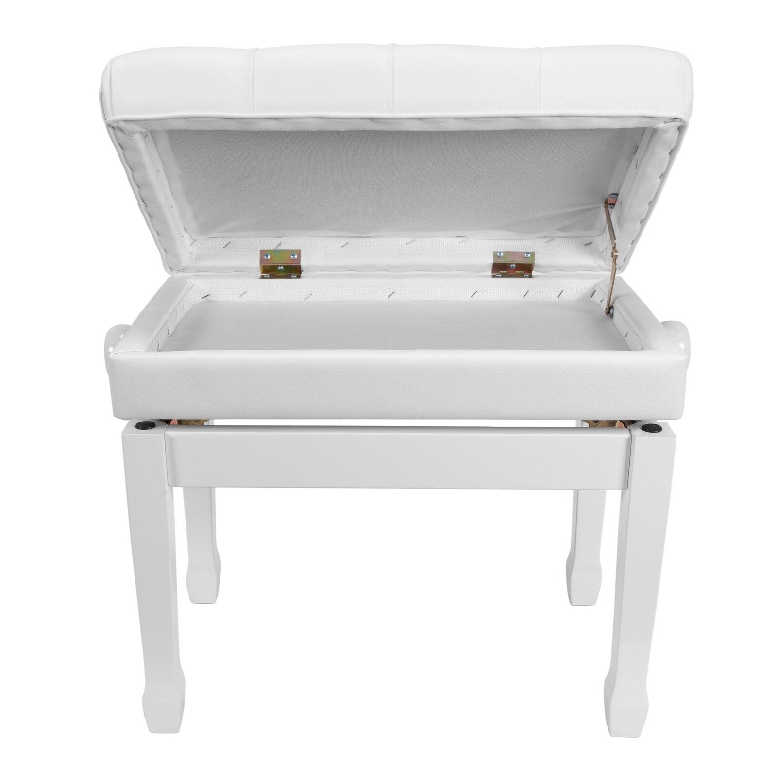 Crown Premium Tufted Double Padded Height Adjustable Piano Stool with Storage Compartment (White)