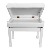 The Crown CPS-7AS-WHT features a soft double padded faux leather seat, sturdy wood frame, under-seat storage compartment and heavy-duty metal mechanism to adjust the height of the seat.