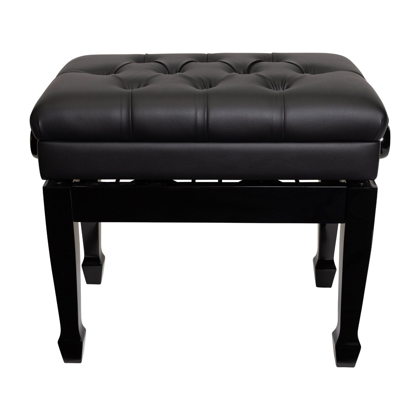 Crown Tufted Height Adjustable Piano Stool with Storage Compartment (Black)