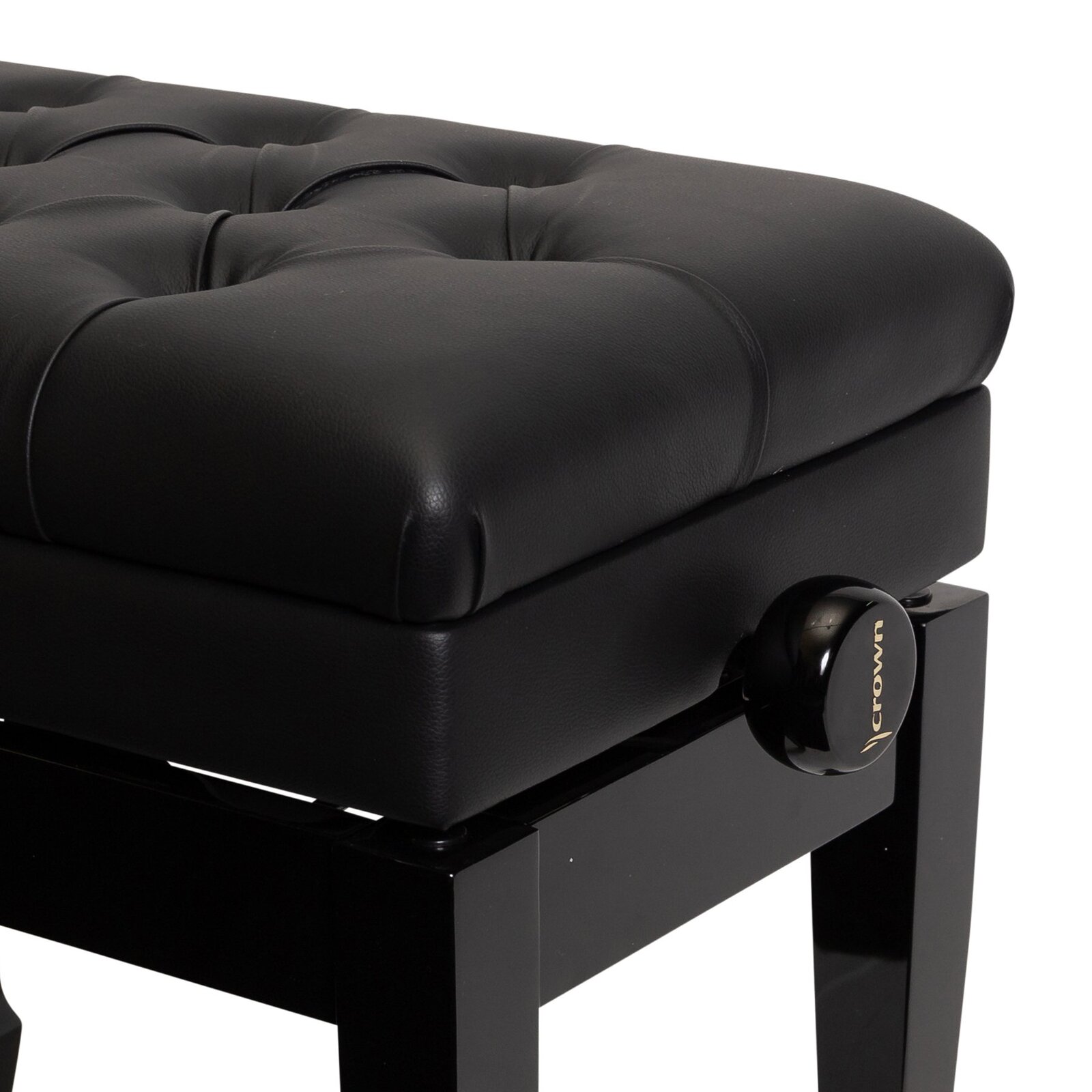 The Crown CPB-41-BLK features a soft padded faux leather seat, sturdy wood frame, under-seat storage compartment and heavy-duty metal mechanism to adjust the height of the seat.