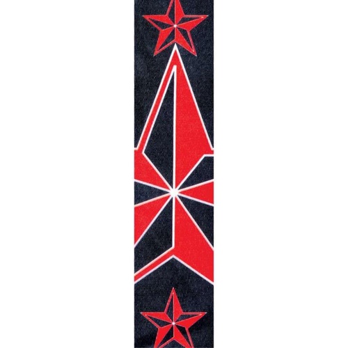 The D'Addario Red and Black Star design polyester guitar strap has great durability and a high quality print to accent your guitar of choice.