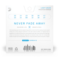 XS Phosphor Bronze strings have the longest life of any DAddario acoustic string, thanks to the ultra-thin XS film coating.