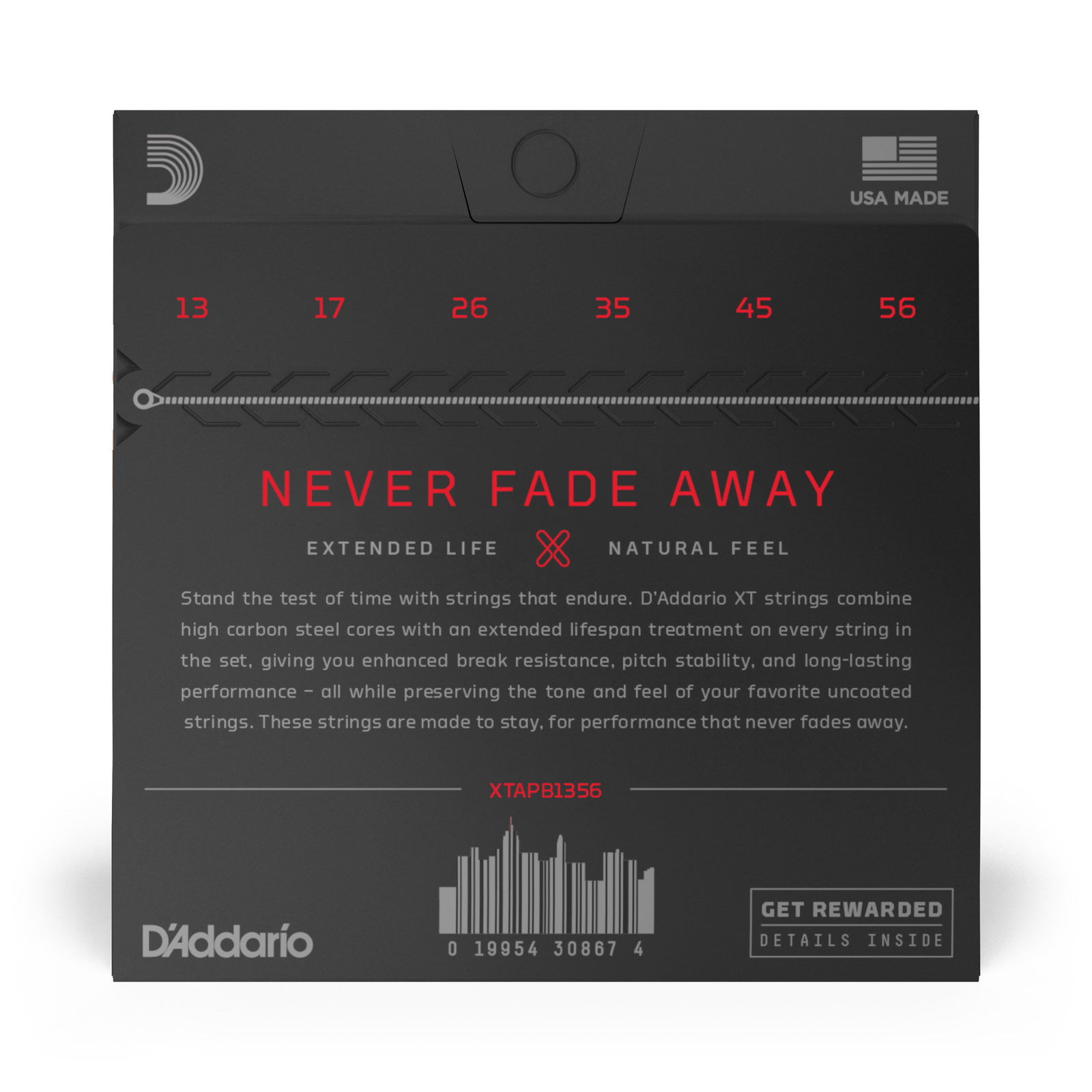 DAddario XT strings feature high carbon steel cores with an advanced corrosion resistance treatment on every string in the set, giving you enhanced break resistance and unyielding pitch stabilityall while preserving the tone and feel of your favorite uncoated strings. These strings are made to stay, with uncompromising performance that never fades away.