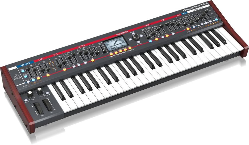The inspired synthesizer tracks laid down in the 1970s and '80s are etched in the annals of progressive rock and pop music forever, making them truly classic in every sense of the word. DEEPMIND 12Xs pure analogue signal path with legendary IR3109-style VCFs, stereo VCAs, and 12-voice polyphony lets you recreate all that magic or design the powerful, original sounds that just might make you a legend in your own right. And now with its updated look, youll have a striking piece of gear in your setup as well. Behringer also included 4 simultaneous FX engines with over 33 world-class TC Electronic, Midas and Klark Teknik algorithms including Reverb, Chorus, Flanger, Phaser, Delay, Multiband Distortion, and many more. Custom-designed and physically modelled after some of the most iconic and sought-after processors, DEEPMIND 12Xs FX were essentially rebuilt in the digital domain and put right at your fingertips. All effects run inside the low-latency environment of the DEEPMIND 12X, ensuring flawless performance and flexible routing.