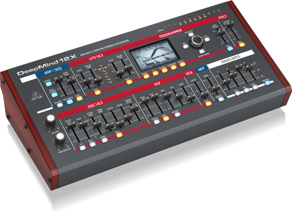 The inspired synthesizer tracks laid down in the 1970s and '80s are etched in the annals of progressive rock and pop music forever, making them truly classic in every sense of the word. DEEPMIND 12XDs pure analogue signal path with legendary IR3109-style VCFs, stereo VCAs, and 12-voice polyphony lets you recreate all that magic or design the powerful, original sounds that just might make you a legend in your own right. And now with its updated look, youll have a striking piece of gear in your setup as well. We also included 4 simultaneous FX engines with over 33 world-class TC Electronic, Midas and Klark Teknik algorithms including Reverb, Chorus, Flanger, Phaser, Delay, Multiband Distortion, and many more. Custom-designed and physically modelled after some of the most iconic and sought-after processors, DEEPMIND 12XDs FX were essentially rebuilt in the digital domain and put right at your fingertips. All effects run inside the low-latency environment of the DEEPMIND 12XD, ensuring flawless performance and flexible routing.