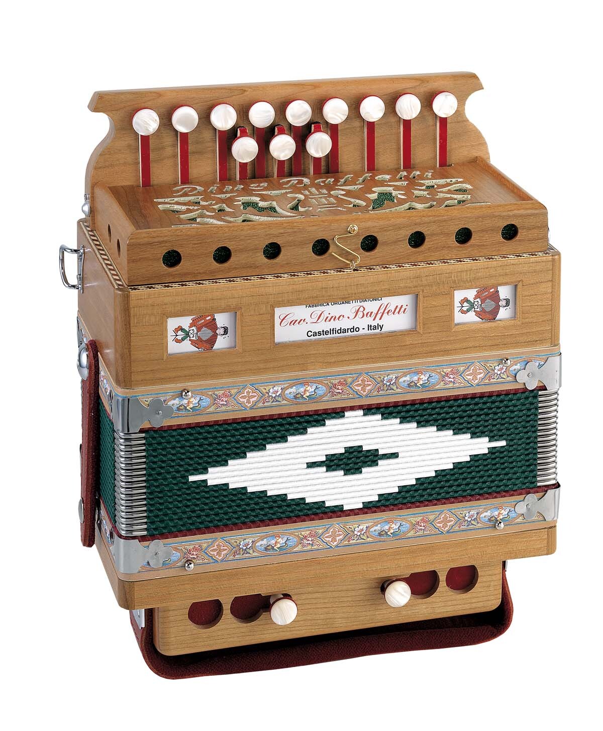 Dino Baffetti Art 25 Button Organetto Accordion Calabrese MK2 Hand Made New Improved Mechanism with Leather Pads and Design
