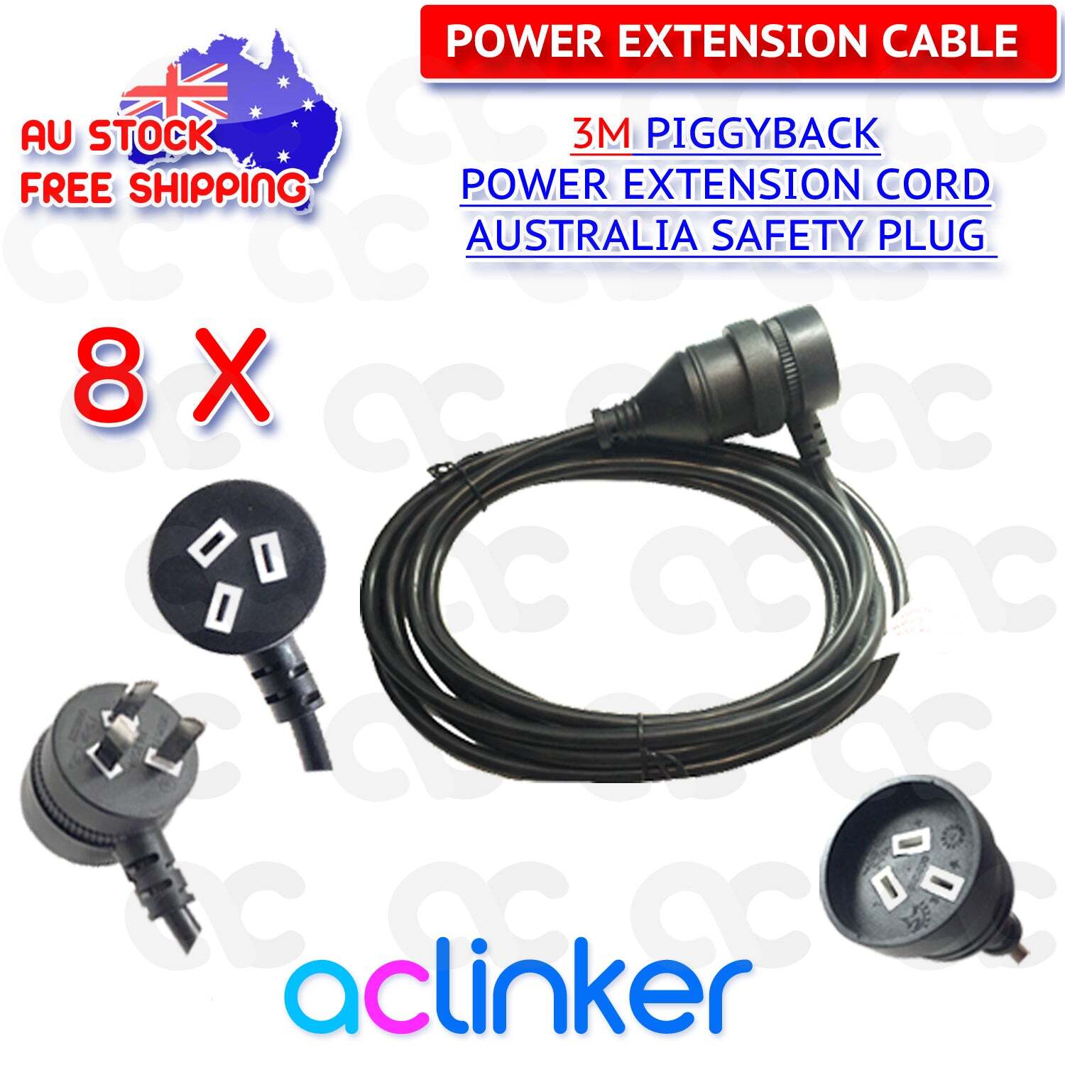 Yes, We Price - Match DL 3 Meters Black Piggyback Plug Main Power Extension Cord 240V 3 Pin 10A 1.0mm Cable(184.027)