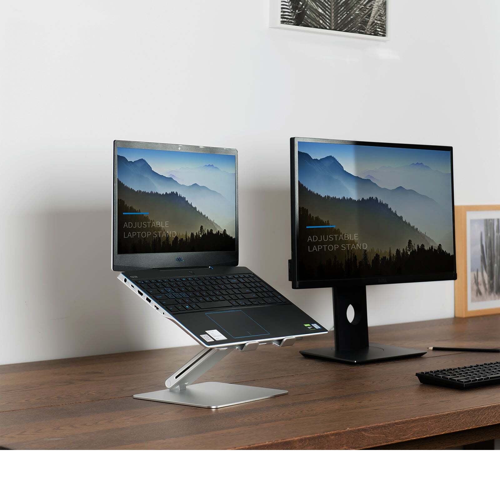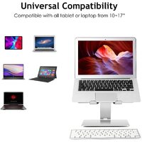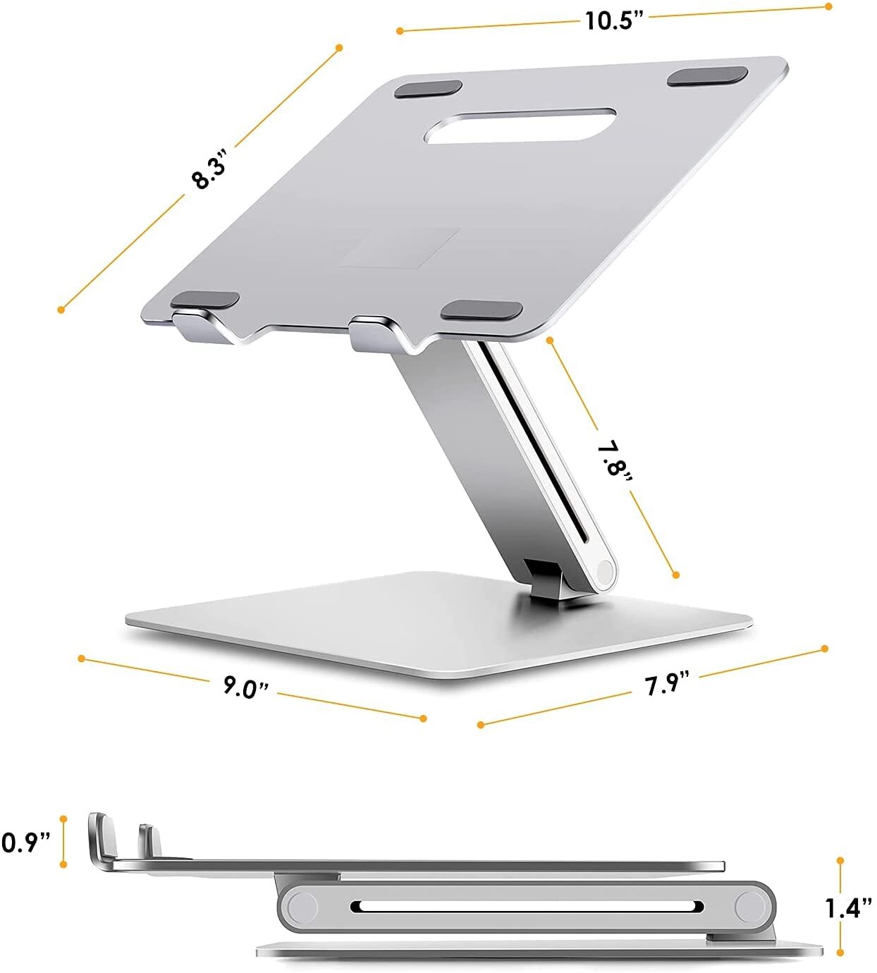- û§WIDE COMPATIBILITY & OFFICE ERGONOMIC: Ergonomic laptop stand for the desk lift your notebook to a height of eye level, which helps you form a good sitting posture. It fits most the models of laptops from 10-17", compatible with Apple MacBook, Powerbook, iPad Pro, Sony, Dell, Toshiba, Lenovo, and other notebook and Pad models.