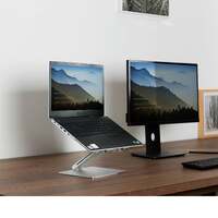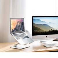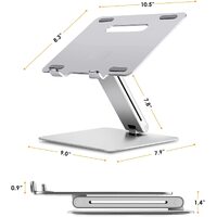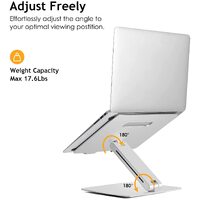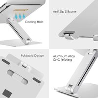 - û§STYLISH DESIGN: Well-shaped aluminum alloy, high-density material with an oxidized surface, which makes the laptop raiser scratch-resisting. Color gloss silver has a brilliant and reflective appearance. Could be a gift welcomed by users in various occupations like frequently on business trips, office workers like programmers, secretaries, freelancers like writers, bloggers, etc.