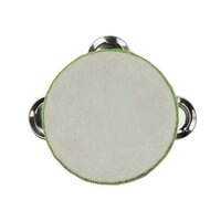 The Drumfire DFP-TH43-NGL 4" Headed Wooden Tambourine features a 4" wooden rim with a drum head on one side and 3 pairs of jingles in a single row around the edge of the tambourine.