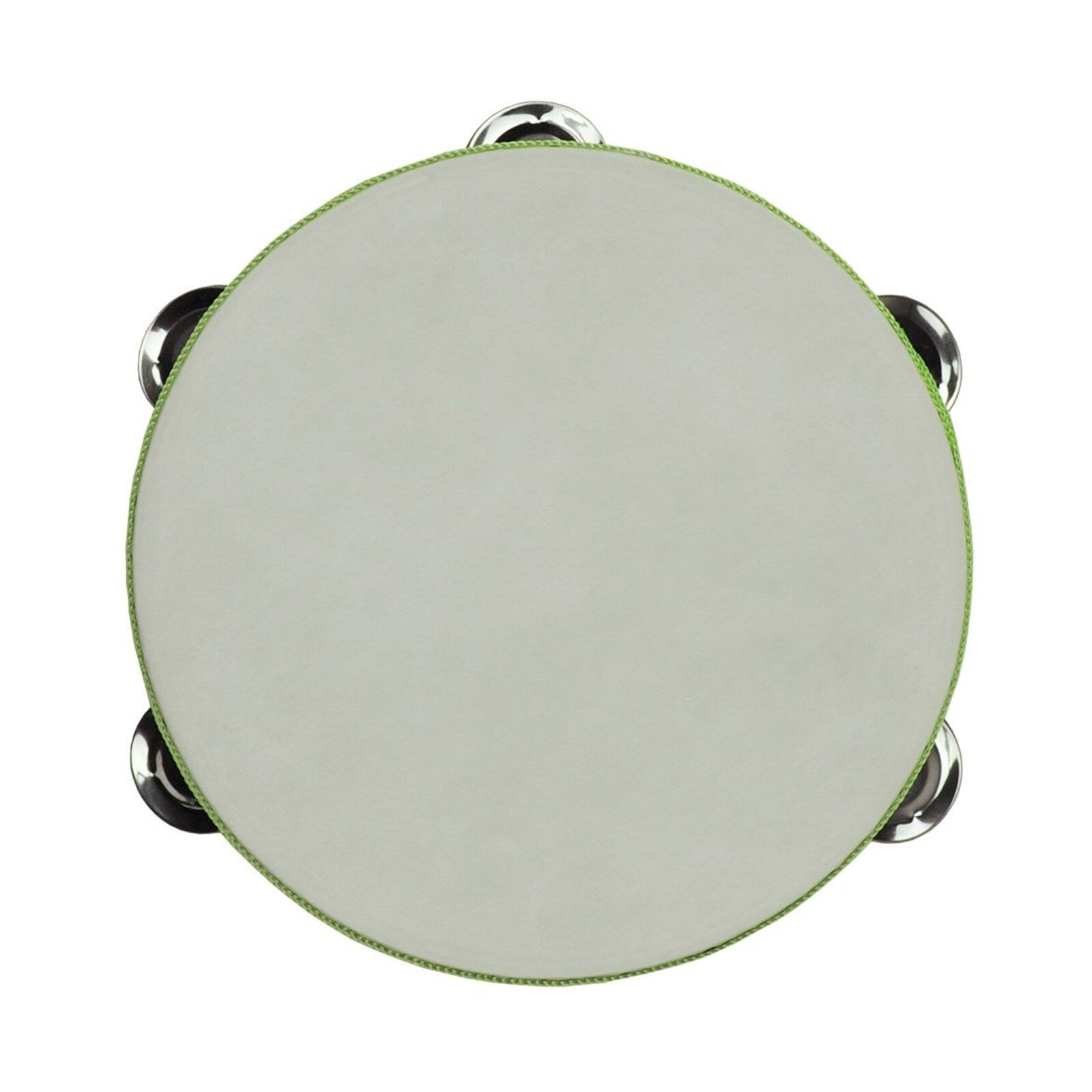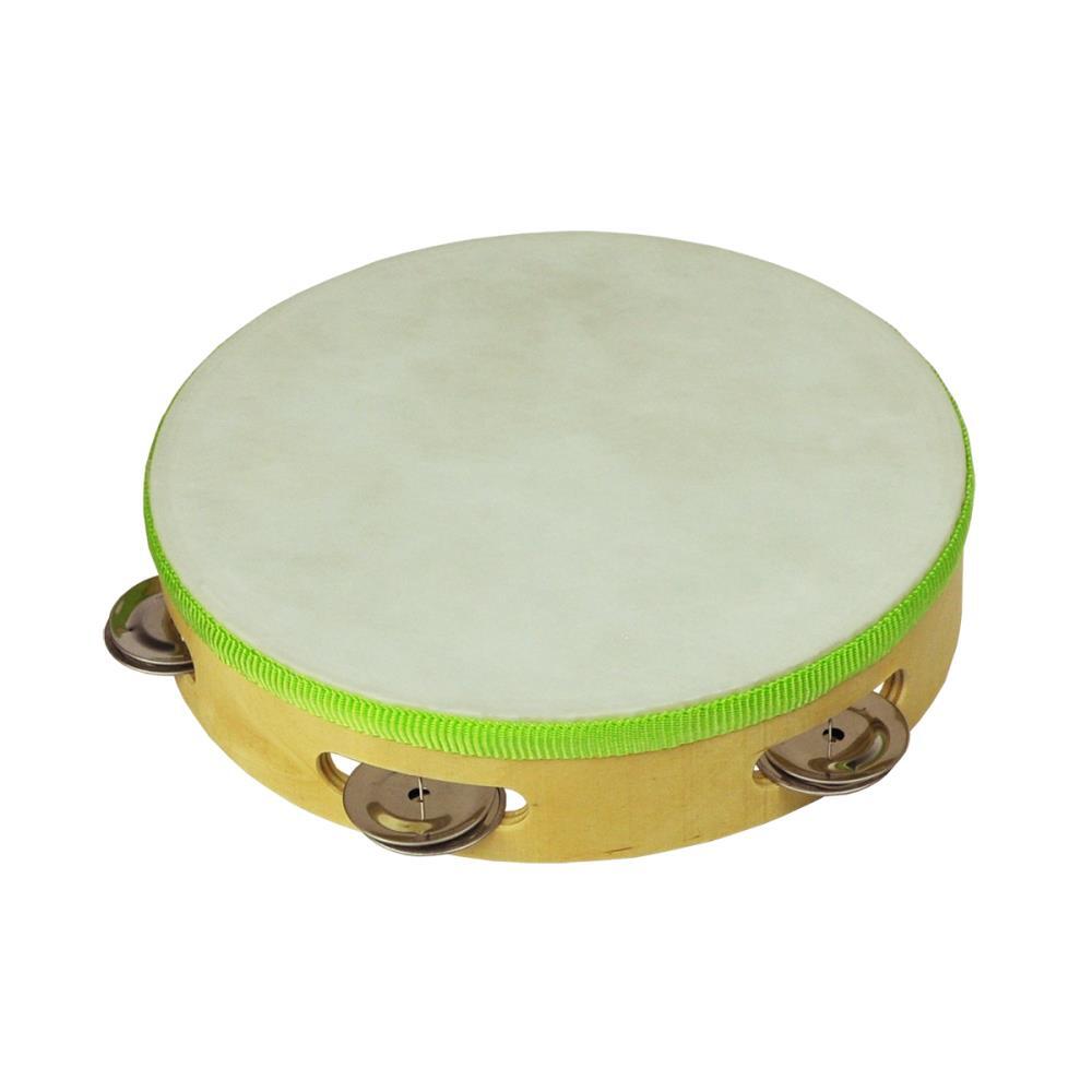 The Drumfire DFP-TH85-NGL 8" Headed Wooden Tambourine features an 8" wooden rim with a drum head on one side and 5 pairs of jingles in a single row around the edge of the tambourine.