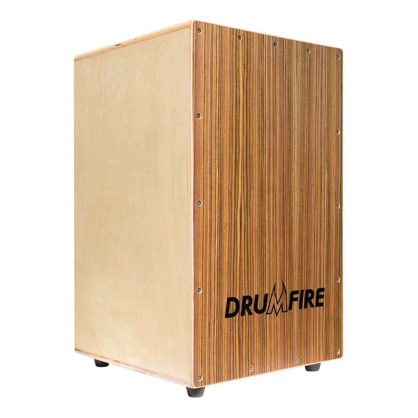Drumfire have done it again with their range of exotic timber fronted cajons!The Drumfire mahogany cajon features rugged marine ply construction with mahogany front panel veneer, inner snare wires, bass port and anti-slip rubber feet.
