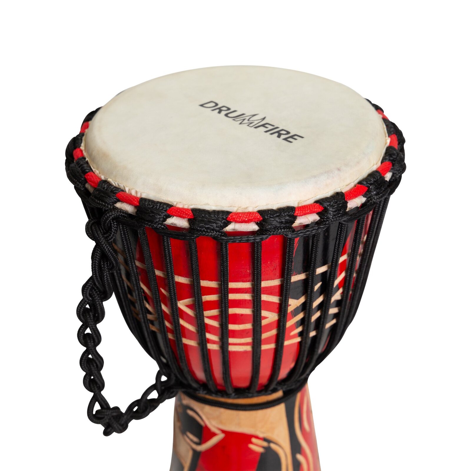 Drumfire 'Majestic Series' 8" Natural Hide Traditional Rope Djembe (Red)