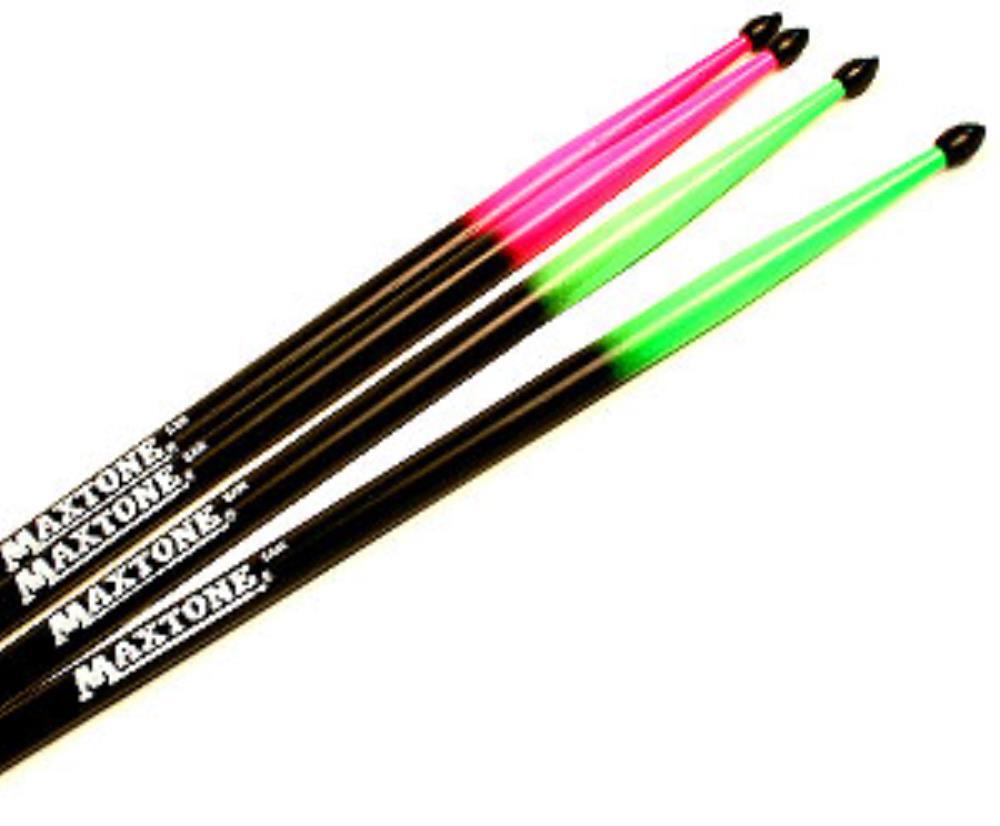 Drumsticks - fluorescent green/red 5an. Brightly coloured drumstick, by Maxtone.