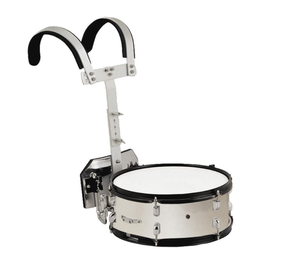 Harnessed marching snare drum. 12 lugs, 13" x 5 1/2", adjustable aluminium harness, including shoulder and abdominal supports.