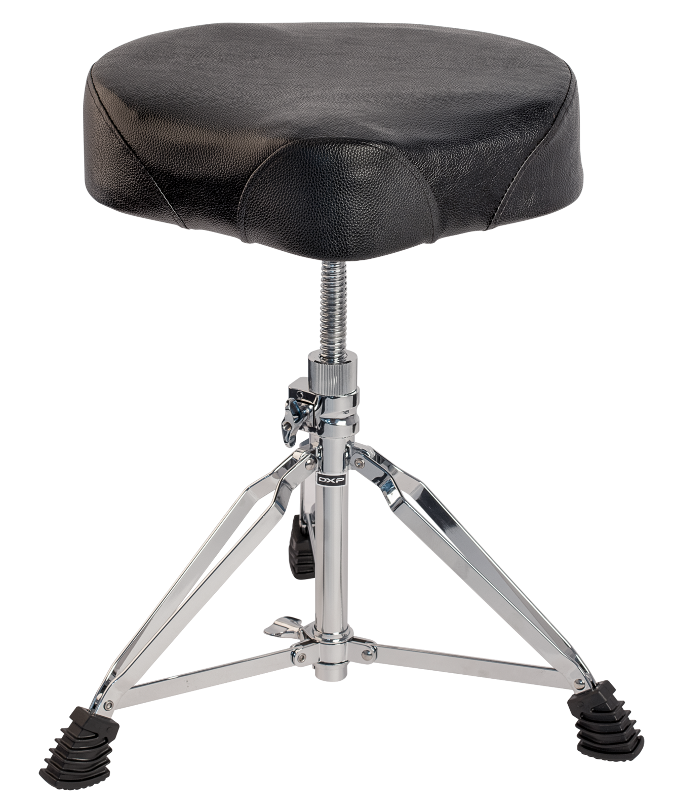 This DXP Deluxe Drum Throne has a Heavy-duty stool with a large padded vinyl saddle-style seat. Quick-release spindle height adjustment – 50cm to 62cm with memory lock. Seat dimensions: 40 x 35 x 10.5cm.