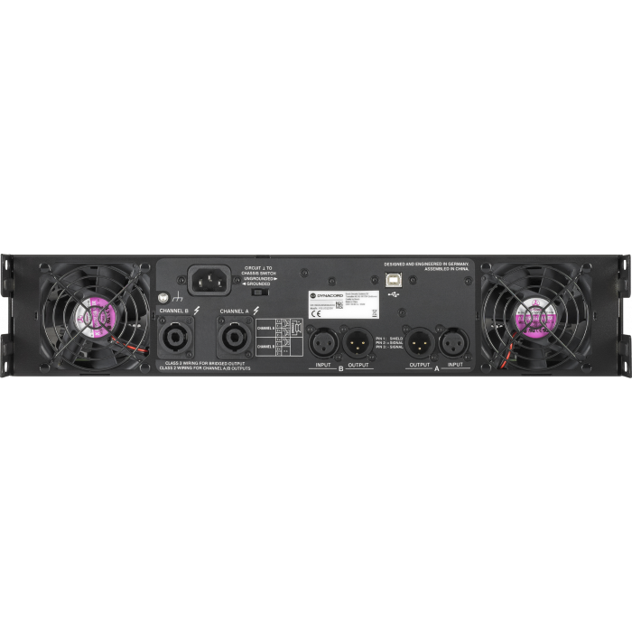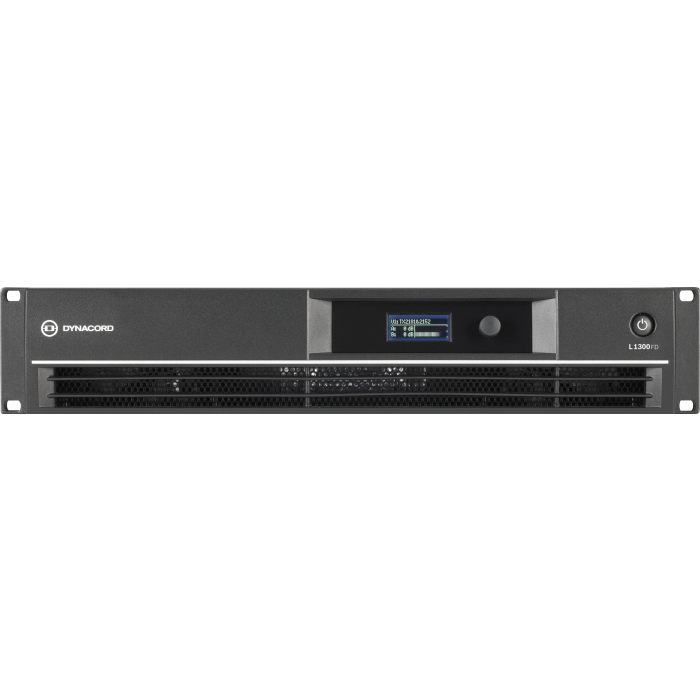 Dynacord 2 x 1300W installation power amplifier with DSP. 2 x 650W at 8 Ohms, 2 x 1300W at 4 Ohms, 2 x 2200W at 2 Ohms. On-board DSP includes multi-band PEQs, crossovers, limiters and delay per channel. Euroblock connectors for convenient wiring, rem