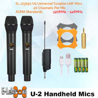 - Wireless UHF microphone set with 2 bodypack Lavalier microphones
