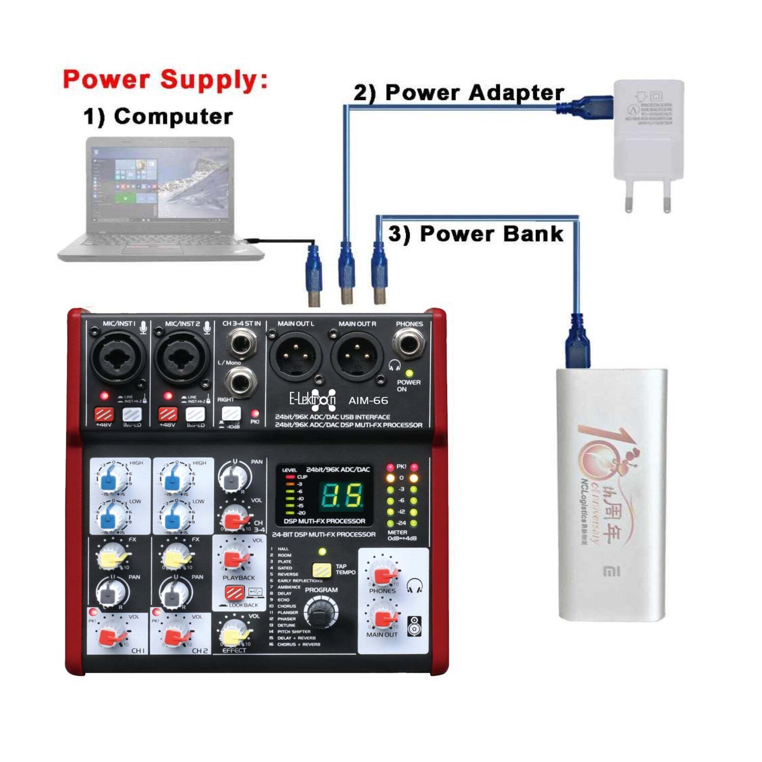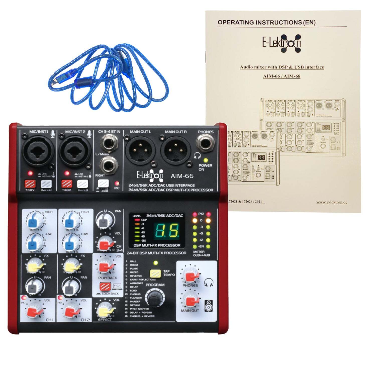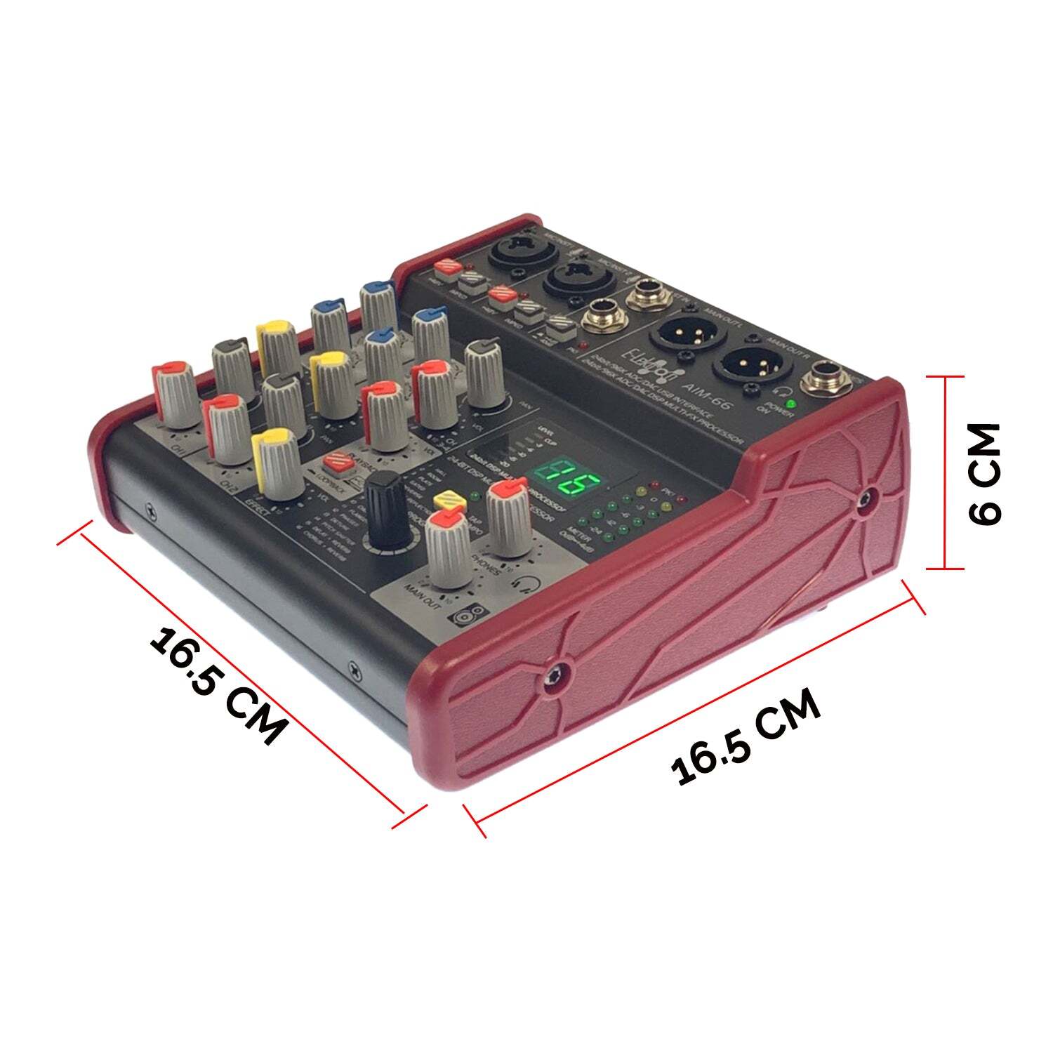The AIM-66 is a compact, portable 4-Channel mixing desk with USB interface (aka sound card) making it suitable for recording, live performances, karaoke singing, and conference rooms.