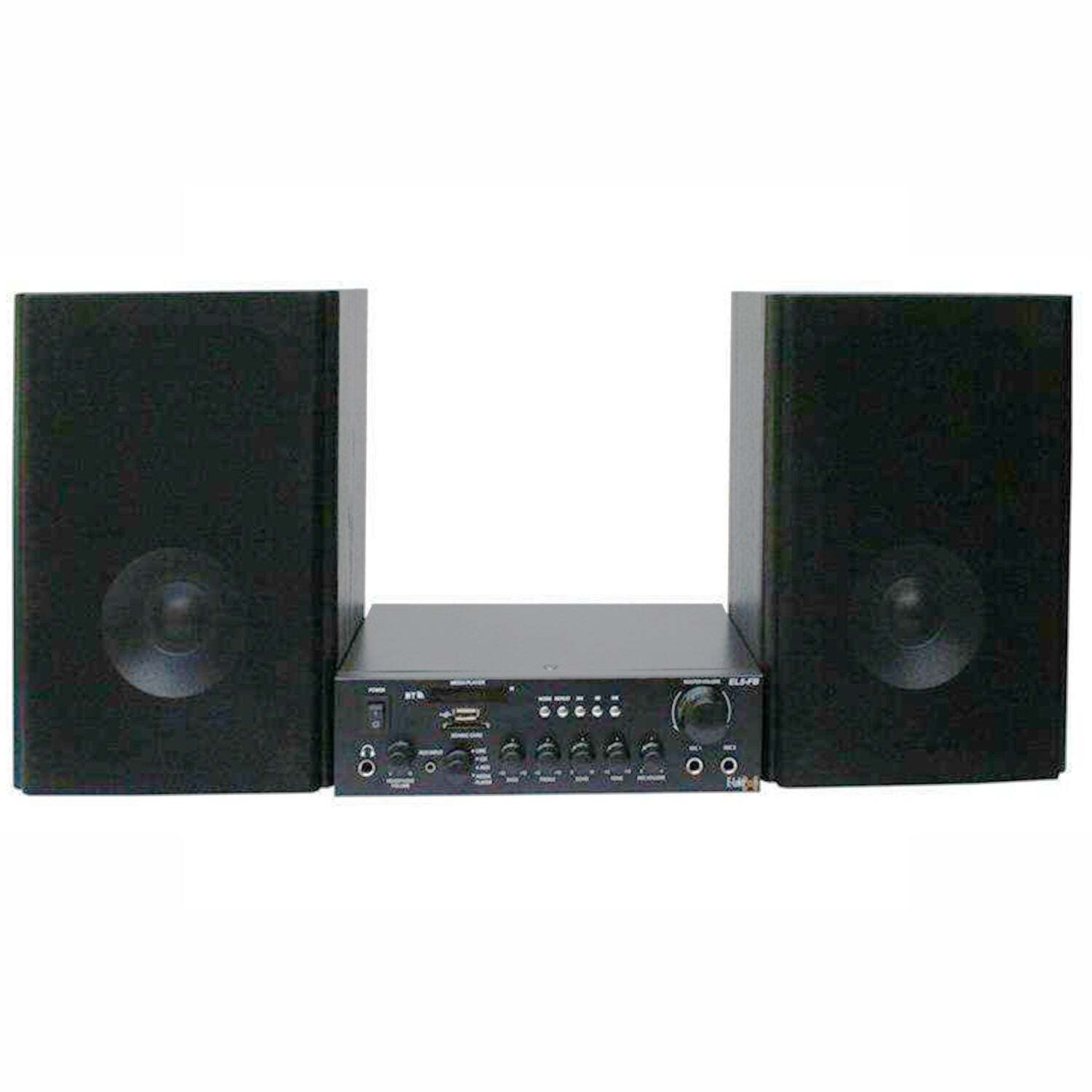 • E-Lektron bookshelf Monitor speakers set with EL5-FB stereo amplifier & BK55 wooden HiFi monitor speakers. The set is characterized by great sound fidelity and many possible uses.