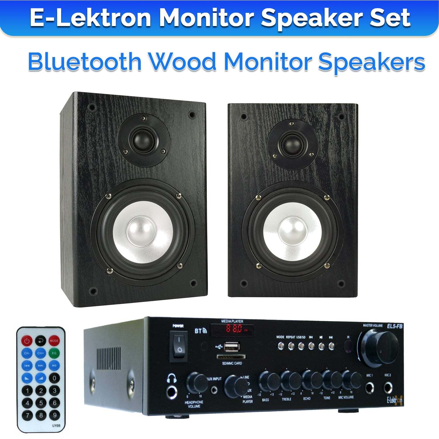 Yes, We Price - Match E-Lektron EL103401 EL-FB HiFi Bluetooth Amplifier with 2-Way Home Stereo Bookshelf Wooden Monitor Speakers Pair(EL103401)