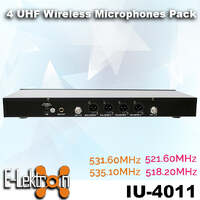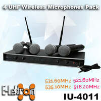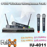 - Wireless UHF microphone set with 4 hand microphones