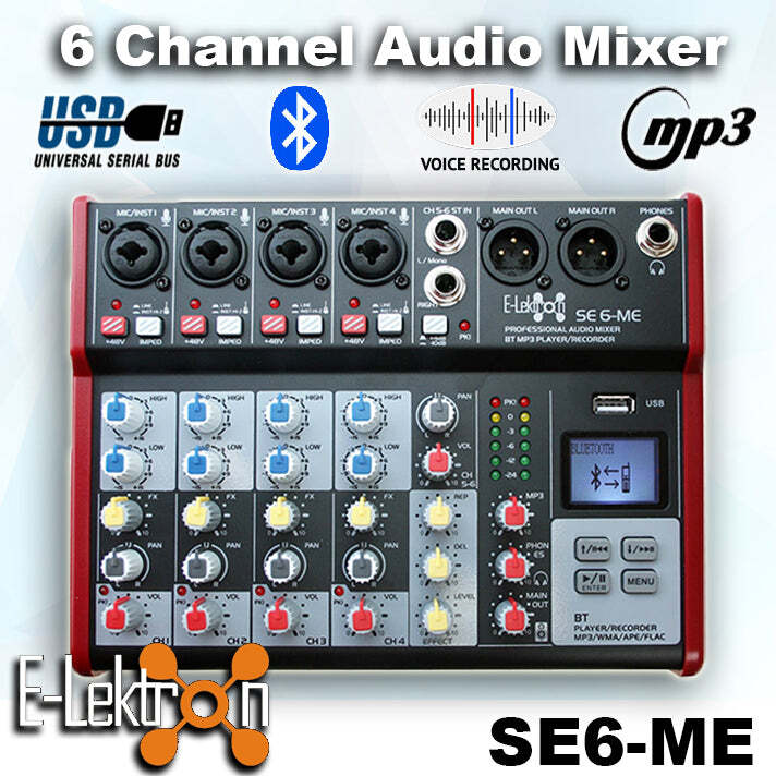 E-Lektron SE-6 Live Audio Mixer 6 Channel Mixer incl. USB Bluetooth Soundcard Phantom Power