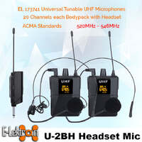 E-Lektron U-2BH Dynamic UHF 20 Channels Tunable Universal 2 Wireless bodyback Headset Microphone With Mini Plug Receiver