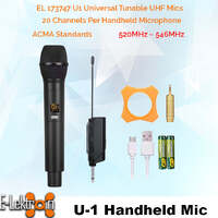 E-lektron U1 Dynamic UHF 20 Channels Tunable Universal 1 Wireless Handheld Microphone System With Mini Plug Receiver