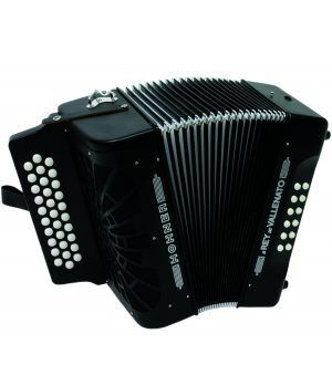 HOHNER EL REY VALLENATO DIATONIC BUTTON ACCORDION, 3-ROW GCF, MMM REEDS, BLACK, WITH GIG BAG