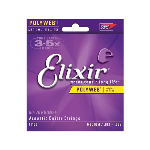 Elixir® Acoustic 80/20 Bronze Strings with POLYWEB® Coating deliver a warm, "played-in" tone together with extended tone life that players have come to expect from Elixir Strings.